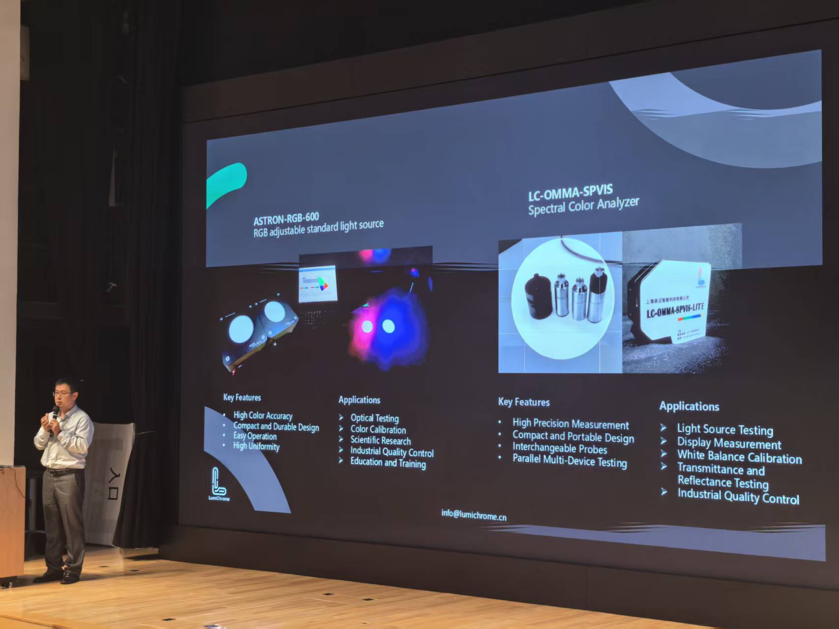 本次展会上,录迈科技将ASTRON-RGB-600 RGB可调标准光源和LC-OMMA-SPVIS LED色彩分析仪两大明星产品作为展示重点。清晰呈现了产品在色彩精准度、数据稳定性上的优势,吸引了大批显示、影像、AR/VR领域的客户、科研机构代表驻足观看,现场咨询与合作洽谈氛围热烈。